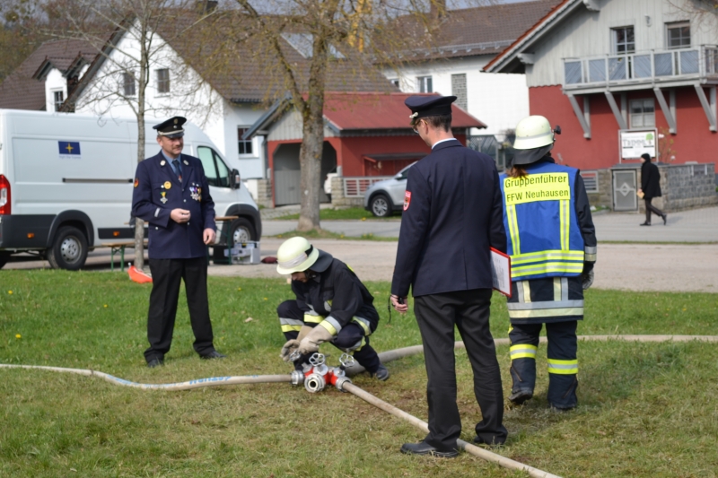 Nach knapp 14tägiger intensiver Vorbereitung stellten sich 27 Feuerwehrlerinnen und Feuerwehrler der Freiwilligen Feuerwehren Neuhausen und Buchberg am vergangenen Samstag der Abnahme zur Leistungsprüfung Löschangriff. Aufgeteilt auf 3 Gruppen mit zwei verschiedenen Varianten galt es für die 25 Neuhausener und 2 Buchberger Floriansjünger die vorgegebenen Aufgaben innerhalb der vorgeschriebenen Zeit und möglichst ohne Fehlerpunkte zu absolvieren.