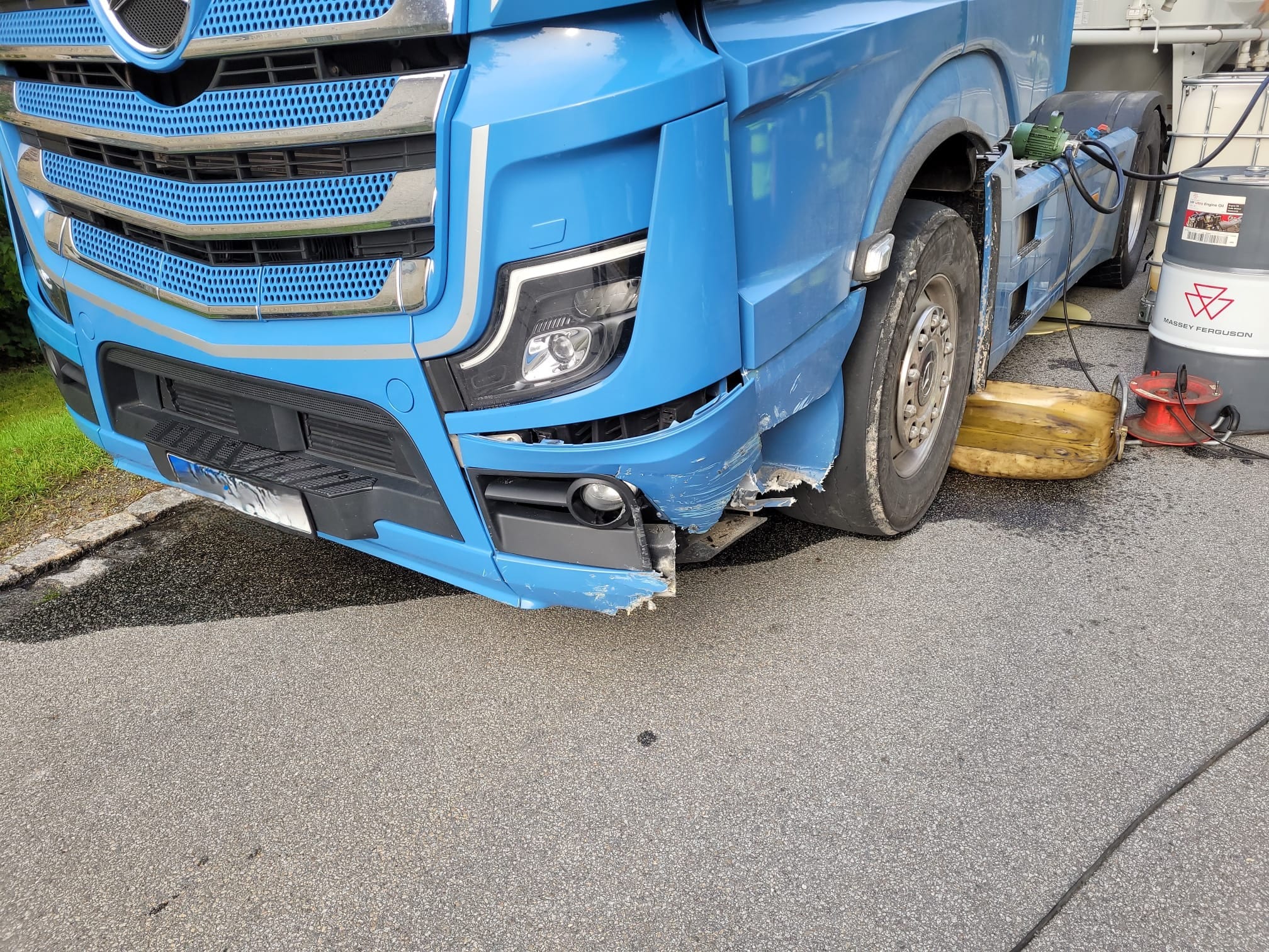 Am 03.09.2025 wurden wir um 07:55 Uhr zu einem ABC-Einsatz nach Offenberg in die Graf-Bray-Straße alarmiert. Dort war ein Lkw gegen ein Hindernis gefahren und hatte dabei seinen Tank beschädigt. Infolge dessen liefen größere Mengen Diesel aus und zogen sich als Spur bis auf Höhe eines Kfz-Betriebs. Die FF Offenberg pumpte ca. 400 Liter Betriebsstoffe ab. Wir banden ausgelaufenen Kraftstoff und sicherten die Einsatzstelle ab. Zusätzlich dichteten wir Kanaldeckel ab, um eine weitere Ausbreitung zu verhindern. Der defekte Lkw samt Sattelauflieger wurde durch den Eigentümer abgeschleppt. Nach Rücksprache mit dem Bauhofleiter wurde eine Nassreinigung der Fahrbahn veranlasst und eine Spezialfirma angefordert. Nachdem alle Maßnahmen abgeschlossen waren, gaben wir die Straße wieder frei.