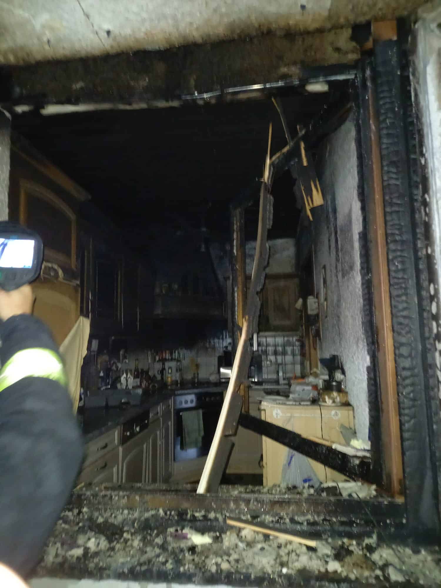 Bedingt durch die Bauweise des Gebäudes hatte sich der Rauch leider schon in fast alle Räume des Gebäudes ausgebreitet sowie das Feuer schon die Küche im EG sowie einen Flur massiv beschädigt. Ein weiteres Ausbreiten auf das restliche Gebäude sowie den Dachstuhl konnte durch das rechtzeitige Eingreifen verhindert werden.