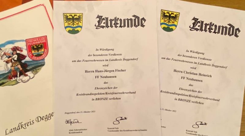 In Wallerdorf fanden am Samstag, 15.10.2021 die Landkreisehrungen für verdiente Einsatzkräfte der Feuerwehren aus dem Landkreis Deggendorf statt. Auch von