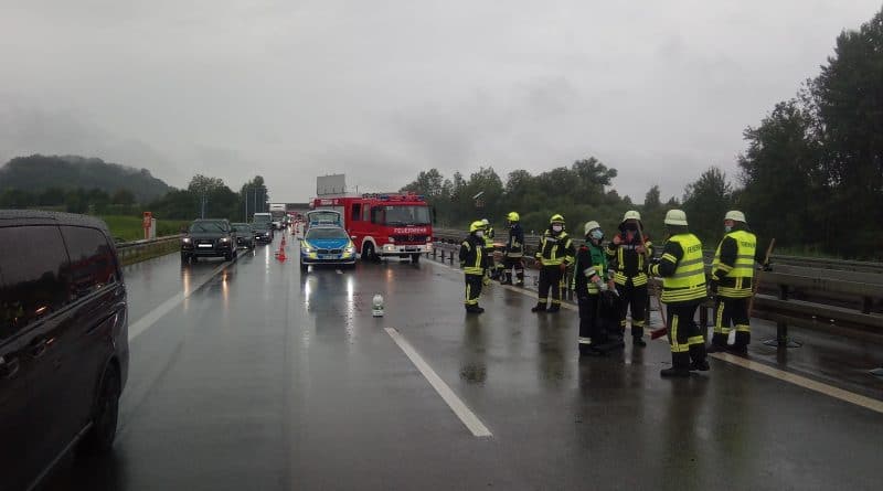 Am Samstagvormittag ereignete sich auf der BAB A3 in Fahrtrichtung Passau kurz vor dem AK Deggendorf ein Frontalzusammenstoß zwischen zwei PKWs. Weitere Fahrzeuge waren nicht beteiligt. Aufgrund der aktuellen Baustellensituation stellte bereits die Anfahrt zum Unfallort ein Problem dar, da es es zeitweise kein Durchkommen gab und so der Gruppenführer die restliche Strecke zur Erkundung zu Fuß zurücklegen musste.