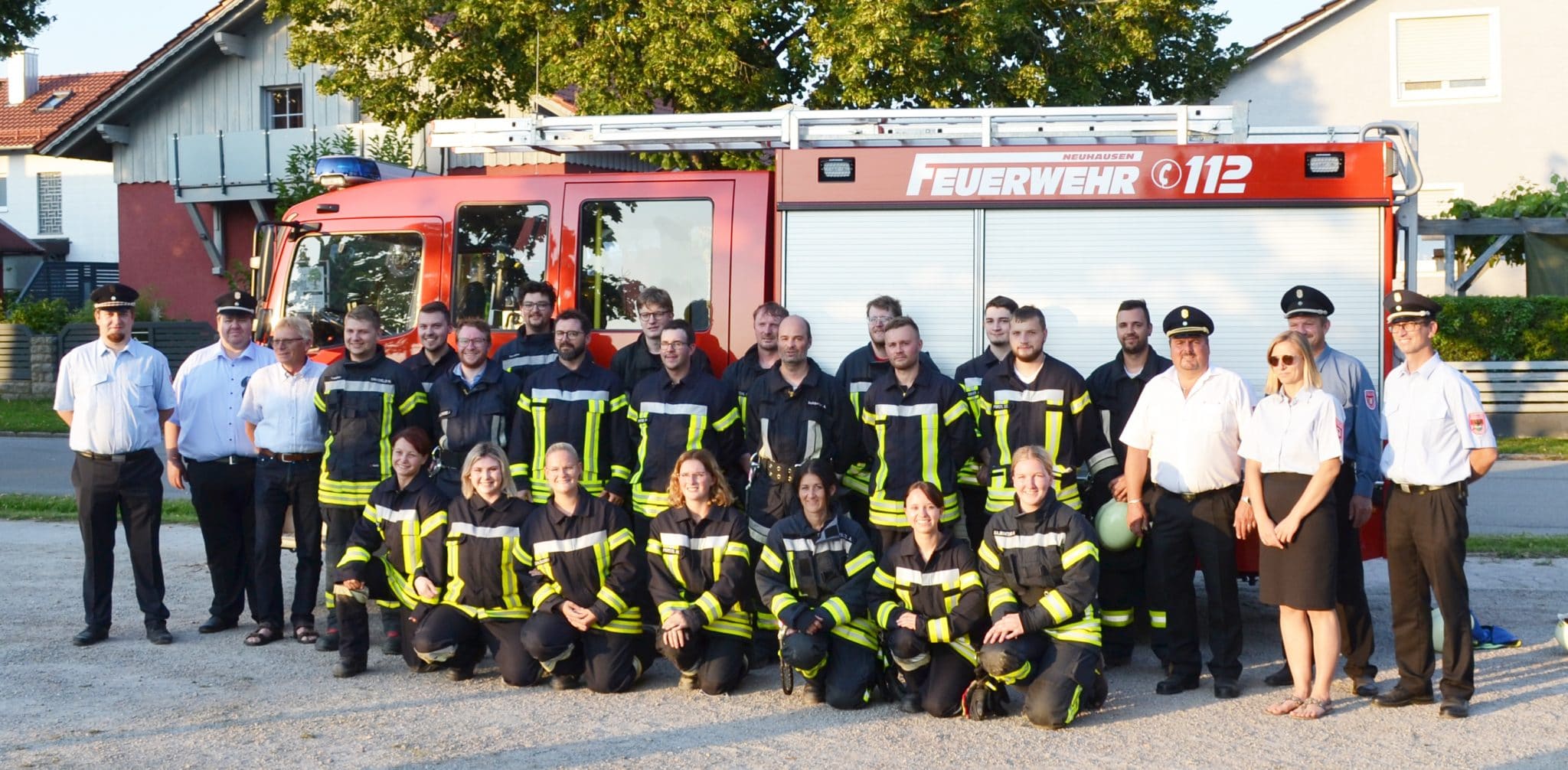 Am Freitag stellten sich 22 Mitglieder der FFW Neuhausen wieder der Leistungsprüfung Löschangriff. In drei Gruppen wurde die Variante 3 (simulierter Innenangriff) abgelegt. Entsprechend der jeweiligen Stufen der Teilnehmer mussten vorab Zusatzaufgaben wie Erste Hilfe, Erkennen von Gefahrensymbolen aber auch Routine-Handgriffe wie diverse Knoten und Stiche gemeistert werden. Danach ging es zum Aufbau des Löschangriffs selbst. Den Abschluss jeder Gruppe stellte das Saugschlauchkuppeln dar.