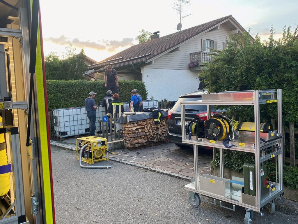 Bei einem Gebäude in der Thannbergstraße schwammen Heizöltanks auf und wurden dabei beschädigt. Zur Beseitigung des Öl-Wasser-Gemischs wurde Spezialgerät in Form des AB Gefahrgut nach Neuhausen beordert und das Gemisch in mehrere IBC Behälter die zuvor bei einer Firma in Niederwinkling organisiert wurden eingefüllt.