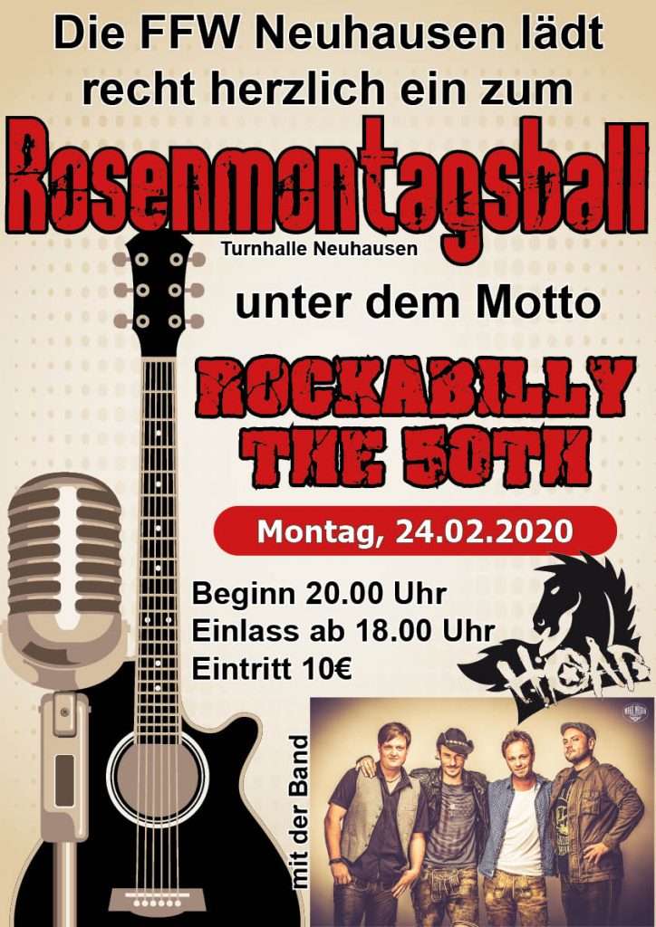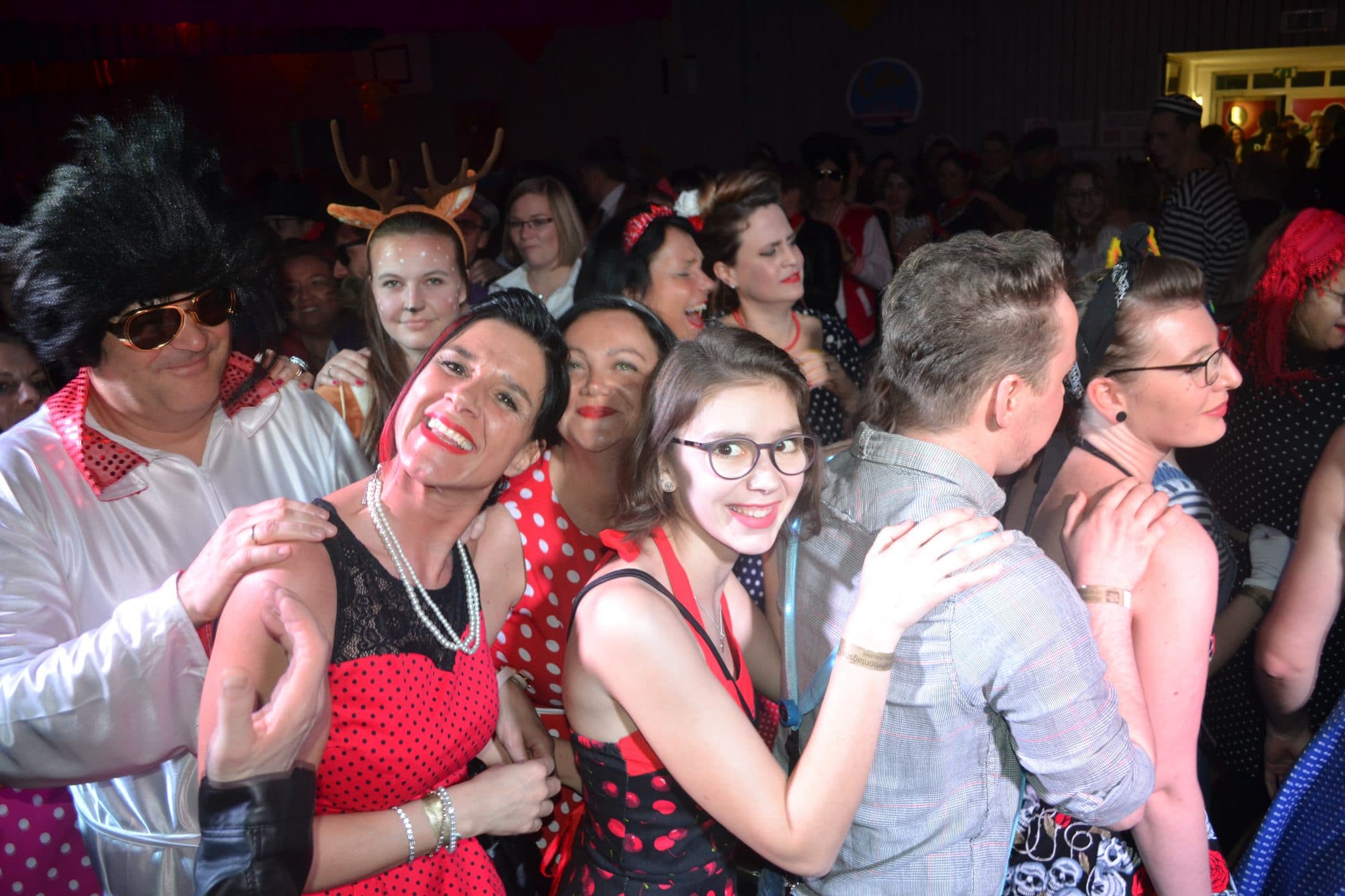 Der diesjährige Rosenmontagsball stand unter dem Motto “Rockabilly – The 50th”. Zahlreiche sehr gut kostümierte feierwütige Gäste strömten wieder in die passend dekorierte Turnhalle in Neuhausen.