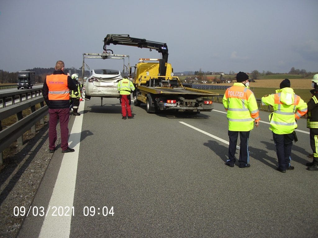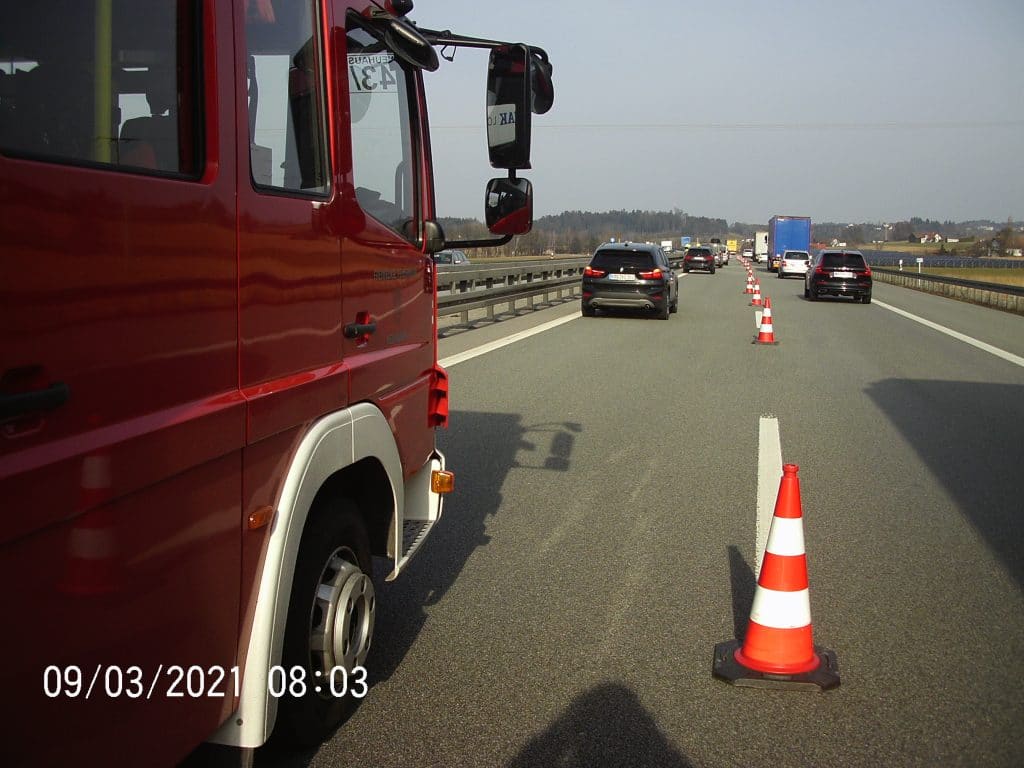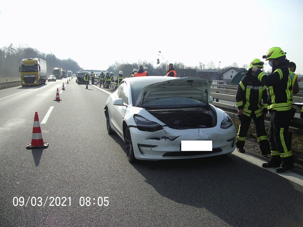 Kurz vor 9 Uhr morgens klingelten die Funkempfänger erneut. Diesmal ging es zu einem Verkehrsunfall mit mehreren PKW´s auf die A3 in Fahrtrichtung Regensburg. Hier ereignete sich kurz nach dem Parkplatz Geigenbühl ein Auffahrunfall mit 3 PKWs, davon ein Elektro-Fahrzeug. Glücklicherweise wurde niemand verletzt.