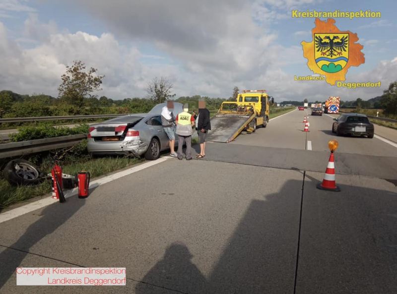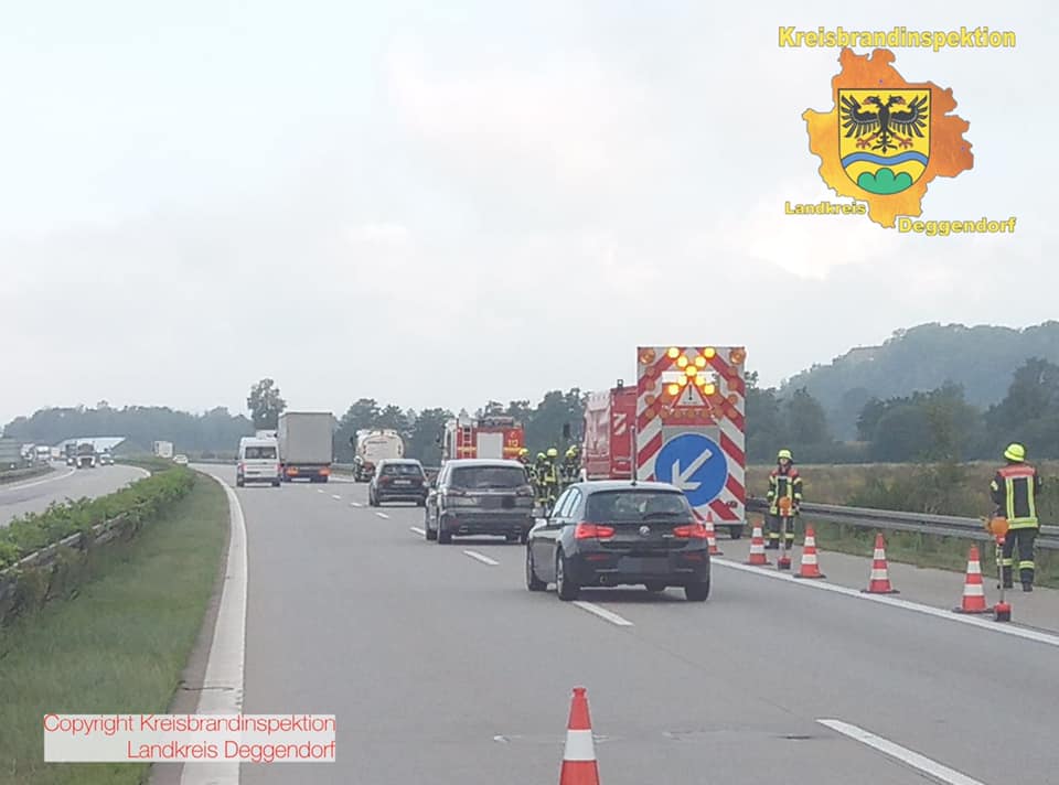 Da sich Fahrzeuge sowohl auf dem Standstreifen aber auch auf dem Überholstreifen befanden wurde ein zweiter Verkehrswarnanhänger der Feuerwehr Deggendorf alarmiert. Zum Glück kamen alle Beteiligten glimpflich davon. Am PKW entstand wohl Totalschaden, auch der Tankwagen wurde erheblich beschädigt so dass eine Weiterfahrt auf eigener Achse nicht mehr möglich war. Der Gesamtschaden liegt nach ersten Schätzungen bei ca. 100.000 €.