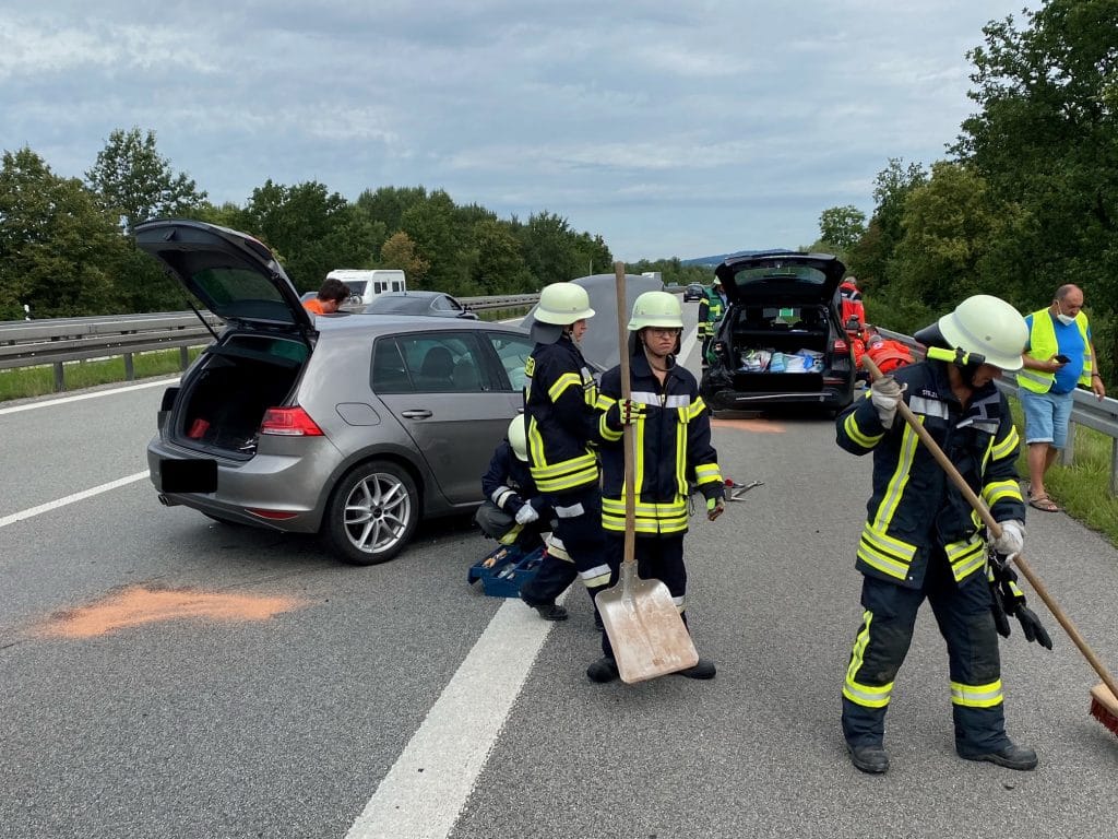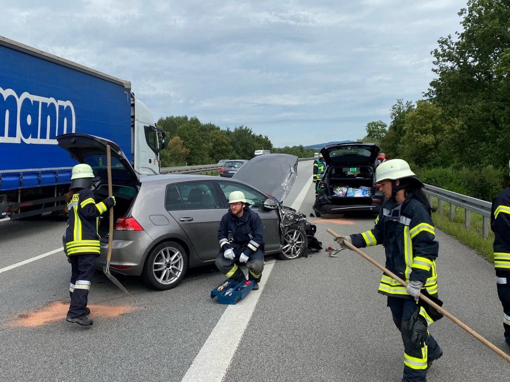 Heute vormitag wurden wir zu einem Verkehrsunfall auf die A3 alarmiert In Fahrtrichtung Regensburg ca. 2km nach dem Parkplatz Offenberg fuhr ein PKW auf der Überholspur auf ein Fahrschulfahrzeug auf. Die drei Insassen wurden vorsorglich vom Rettungsdienst ins Krankenhaus Deggendorf transportiert. Wir kümmerten uns um die Fahrzeuge, banden auslaufende Betriebsstoffe und verbrachten die beiden PKW´s auf den Standstreifen. Die Kameraden aus Metten sicherten die Umsatzstelle mit dem Verkehrswarnanhänger ab und unser Mehrzweckfahrzeug übenahm die Stauvorwarnung kurz nach der Auffahrt Metten. Gegen 10:32 konnten alle Einheiten der Feuerwehr wieder einrücken.