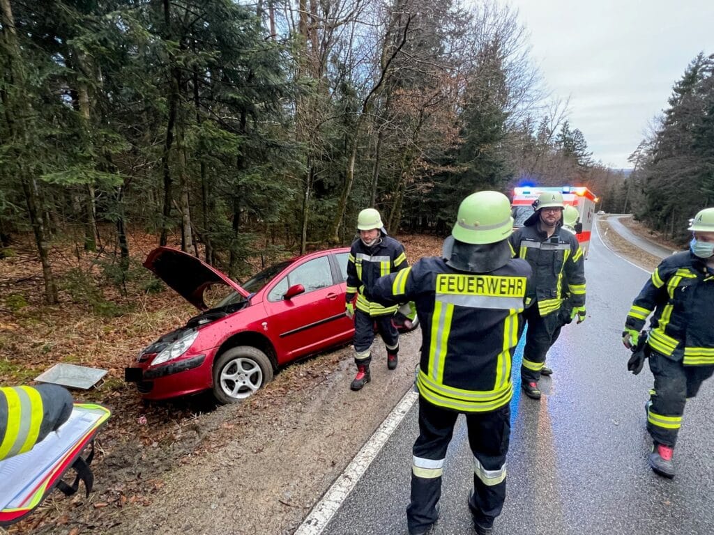 Kurz nachdem der 1te Einsatz abgearbeitet war und die Kameradinnen und Kameraden gerade wieder nach Hause gefahren sind, kam der 2te Einsatz des Tages. Diesmal war die Meldung “Verkehrsunfall mit PKW auf der DEG33”. Vor Ort stellte sich heraus, dass ein Fahrer des verunfallten PKW´s das Fahrzeug aufgrund einer Panne am Fahrbahnrand abstellen wollte und hierbei dann zuweit auf das Bankett fuhr und mit der rechten Fahrzeugfront in den Graben gerutscht ist. Der Fahrer blieb hierbei unverletzt.