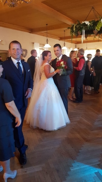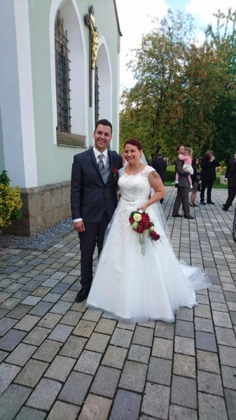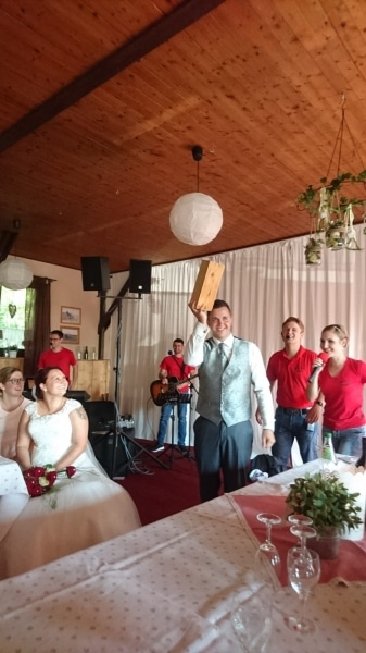 Wir gratulieren Carmen und Simon Pfeffer recht herzlich zur Hochzeit und bedanken uns für die Einladung zum Polterabend und zur kirchlichen Trauung mit anschließender Feier. Auf eurem gemeinsamen Weg wünschen wir euch alles erdenklich Gute.